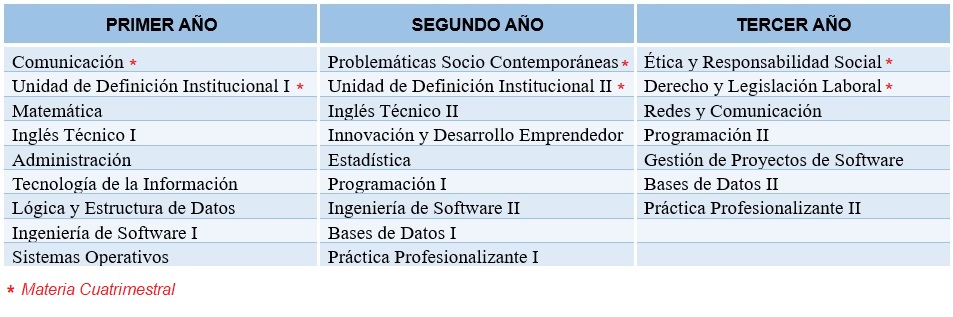 Diseño Curricular de la carrera Técnicatura Superior en Desarrollo de Software